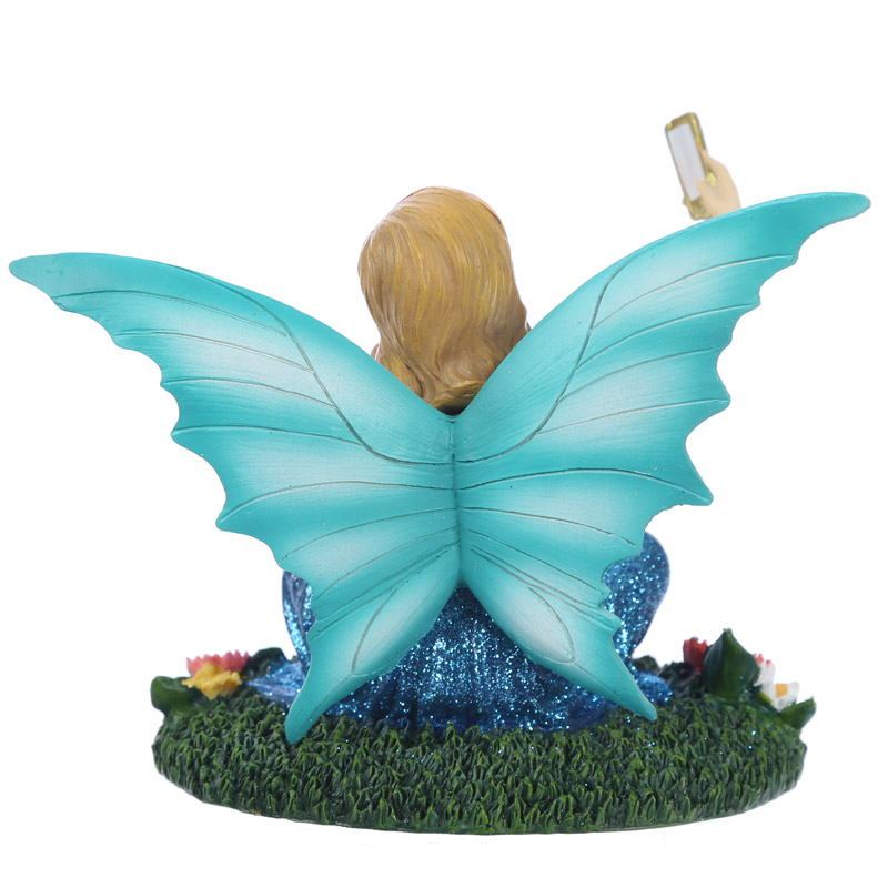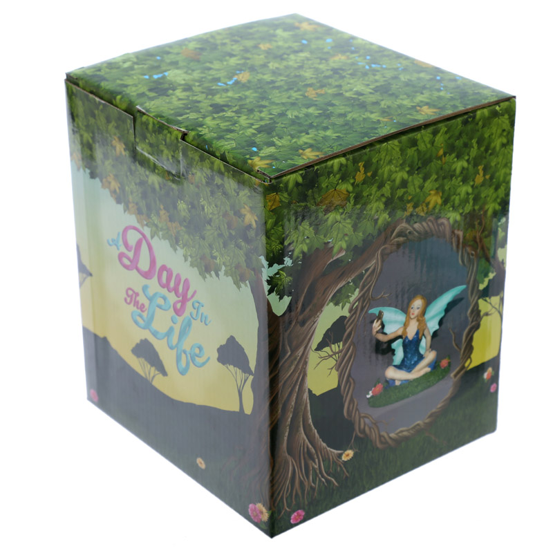 This Forest Fairy sits while taking a selfie with her mobile phone. Made from resin, it is beautifully detailed in design and has been finished in bright realistic colours. Part of the 'Day in the Life' collection.
