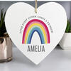 A lovely gift that is sure to bring a smile to their face, this lovely wooden heart is beautifully styled with a pretty pastel rainbow and can be personalised with your own message to create an extra special gift.